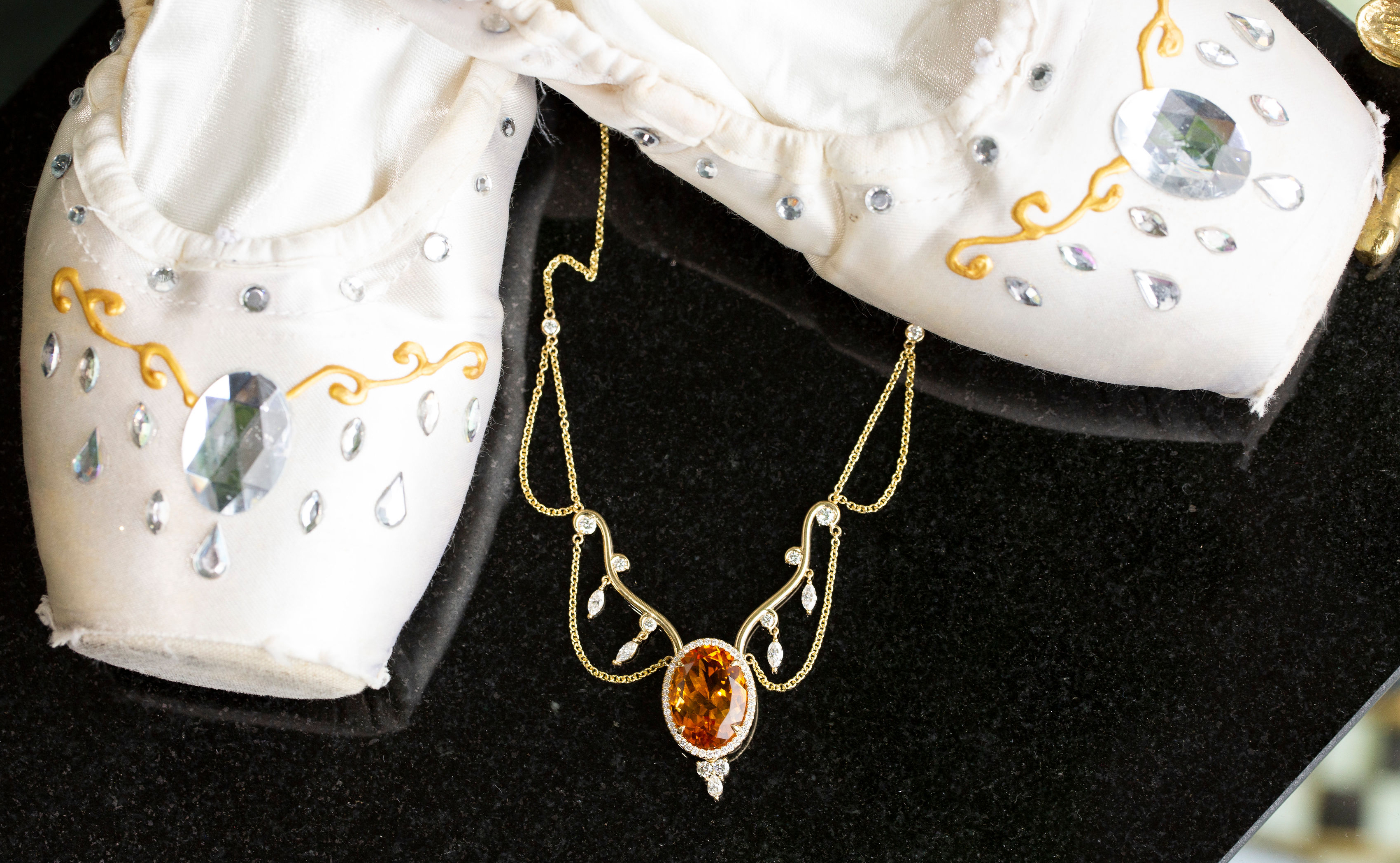 The necklace was designed and handcrafted in Bailey’s Workshop by custom designer Rich Nobrega and will be worn by the principal dancer at each livestreamed Cinderella performance, May 19-20, 2021.